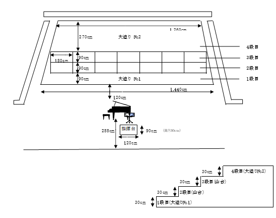 - 伴奏楽器の制限はないが、主催者が準備するピアノ1台以外の楽器を使用する場合は、各団体の責任において準備すること。また、これにかかる費用は、当該出場団体の負担とする。セッティングに時間を要する場合は、その旨をステージ配置図の伴奏楽器の欄に記入すること。